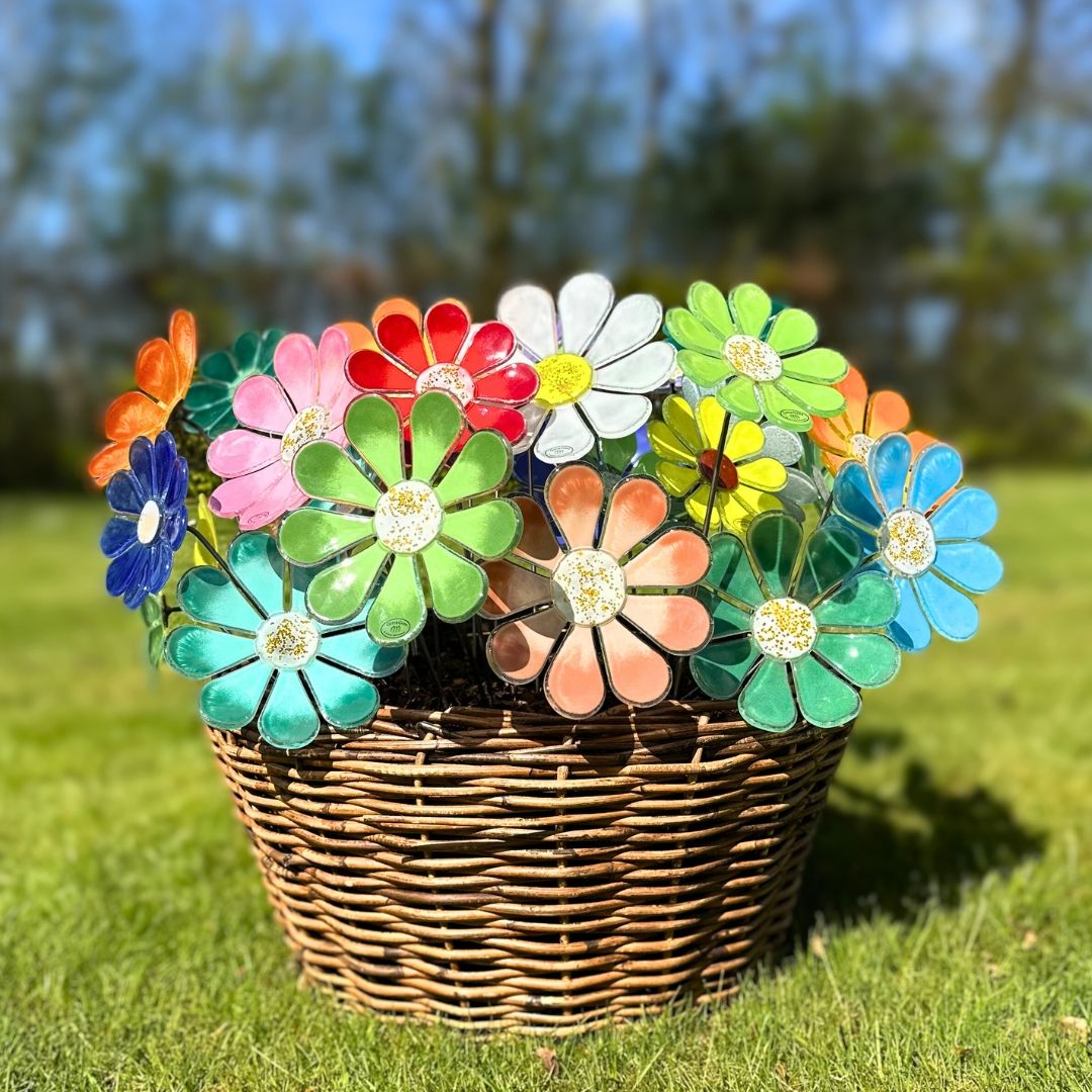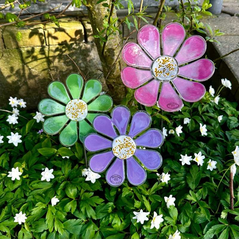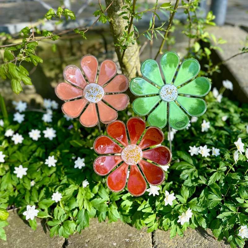 Mine smukke glasblomster, kan stå ude hele året! Giver farve og liv selv på en grå efterårsdag eller på en smuk solskinsdag.