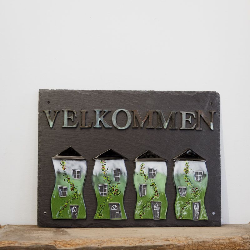Velkomstskilt på skifer - 1 Glashus blå/grøn