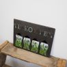 Vil glæde både dig selv og dine besøgende hver gang I går forbi. Lavet på naturskiferplade 40*30 cm og med 4 smukke skæve huse.